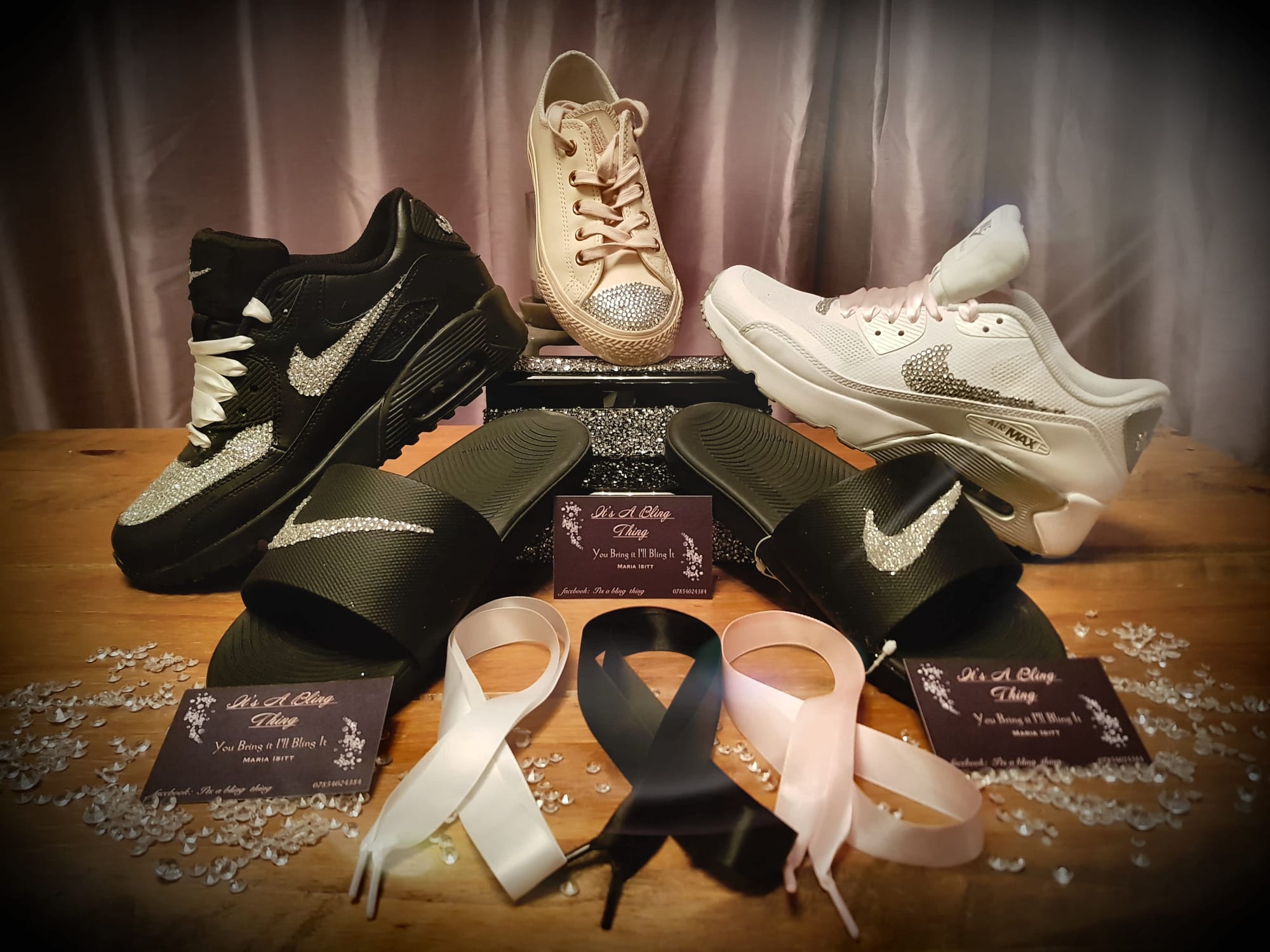 You provide us with any style of trainer and any design idea and we can bling it. £30 adults £20 children £5 silk laces
